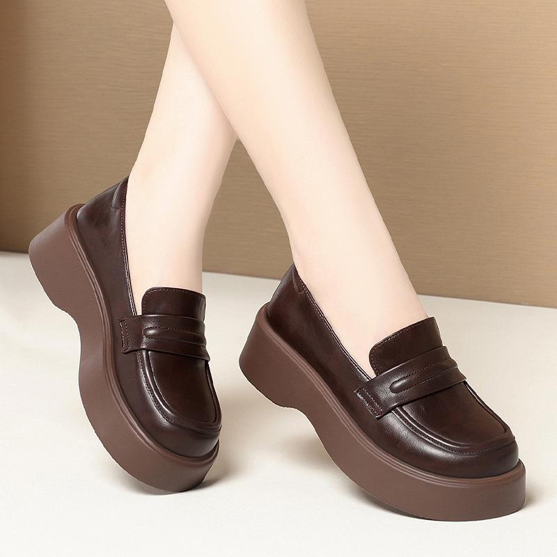 Маленькие кожаные туфли в британском стиле Весна Осень Новые одинарные туфли на толстой подошве Лоферы из мягкой кожи Женская обувь для среднего возраста
