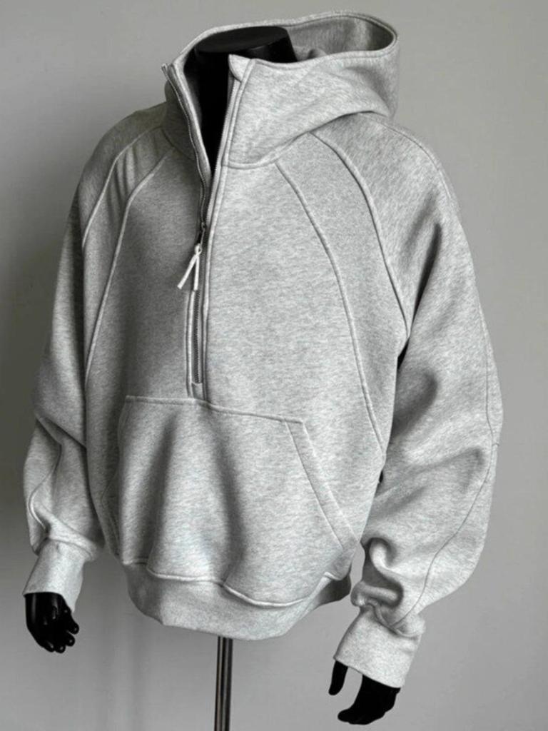 Унисекс Деконструированное худи с воротником-стойкой на молнии до середины для весны и осени