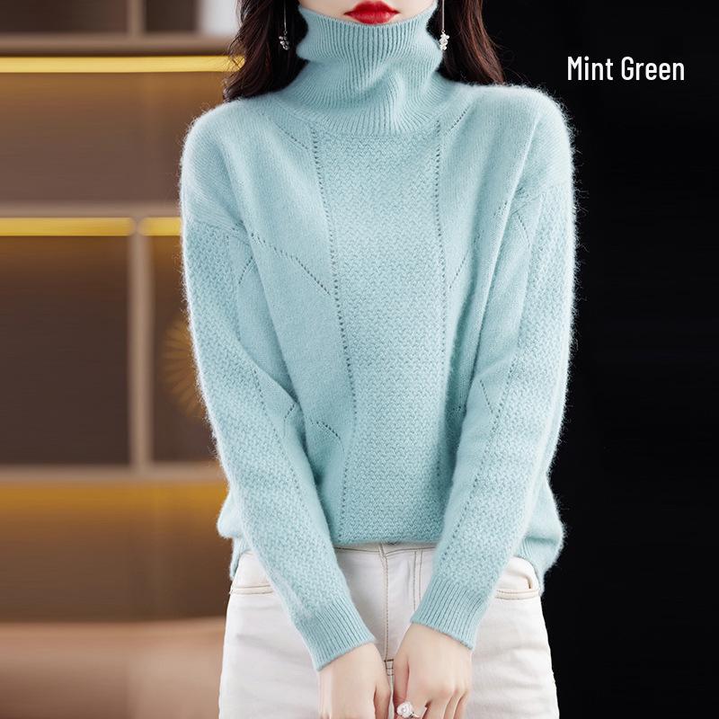 Mink Cashmere High-Neck Loose Pullover: Women's Thick Knit for Autumn/Winter 2025