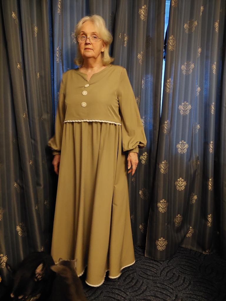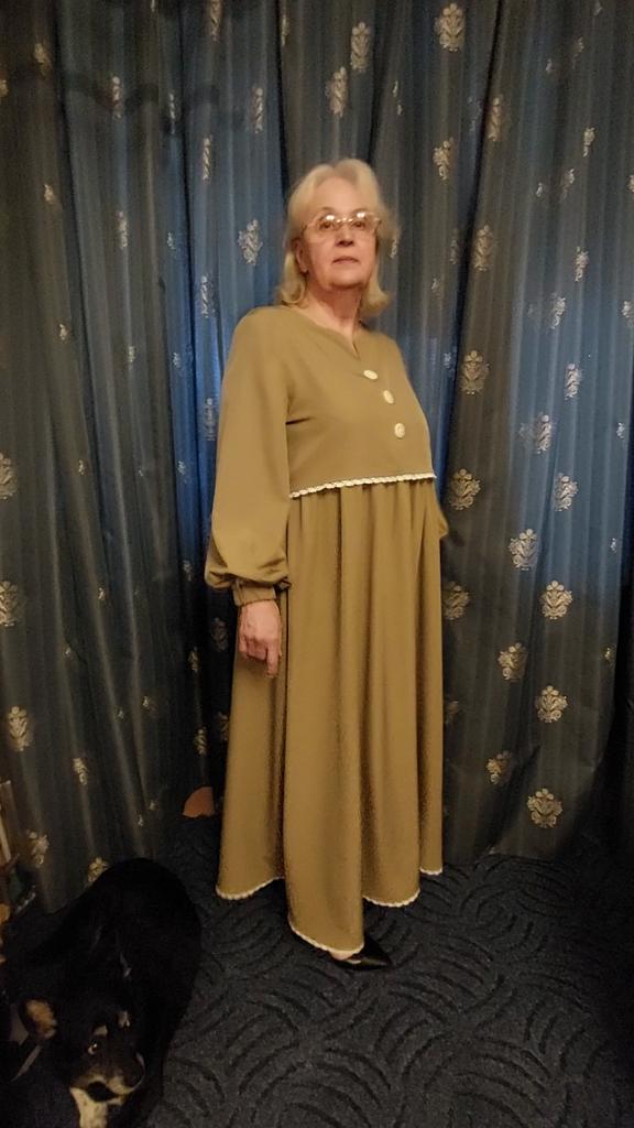 Приобретая это платье я заведомо знала, что его модель, так сказать, "отредактирую" под себя. Платье как на меня шито (по размеру). Но(!) невероятно огромные манжеты, в которые я вдела широкую резинку и вопрос отпал. Потом я удалила родные пуговицы, пришив большие ажурные и притачала узкую х/б ажурную бейку; пришила подплечники. Платье - восторг! Приятная телу ткань, немного шуршит, хорошо стирается, быстро высыхает и отлично утюжится.