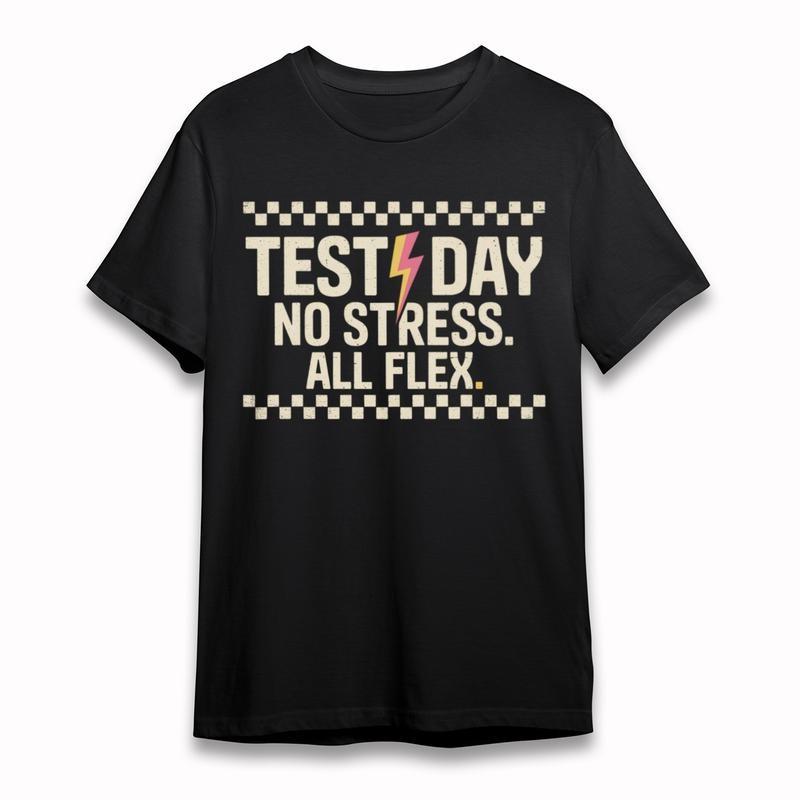 Women's Plus Size T-Shirt Test Day No Stress All Flex Retro Font Chessboard Tee — купить товар онлайн с бесплатной доставкой по всему миру!