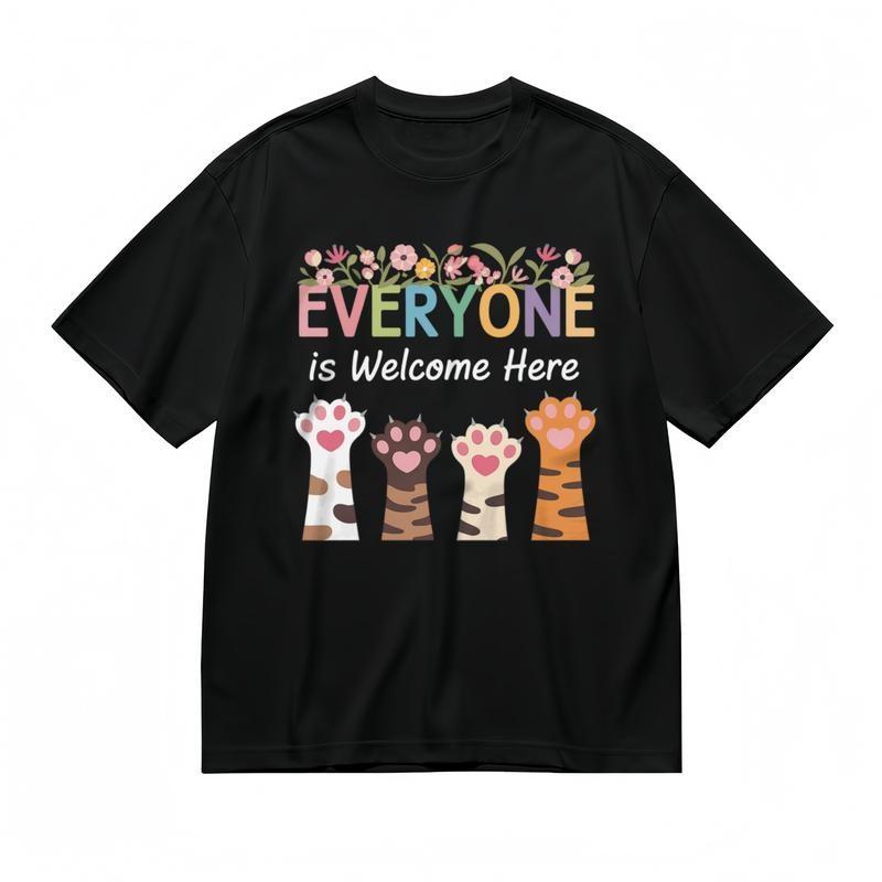 Women's Fashion Classic T-Shirt Inclusive Welcome Message Cat Foot Art Tee