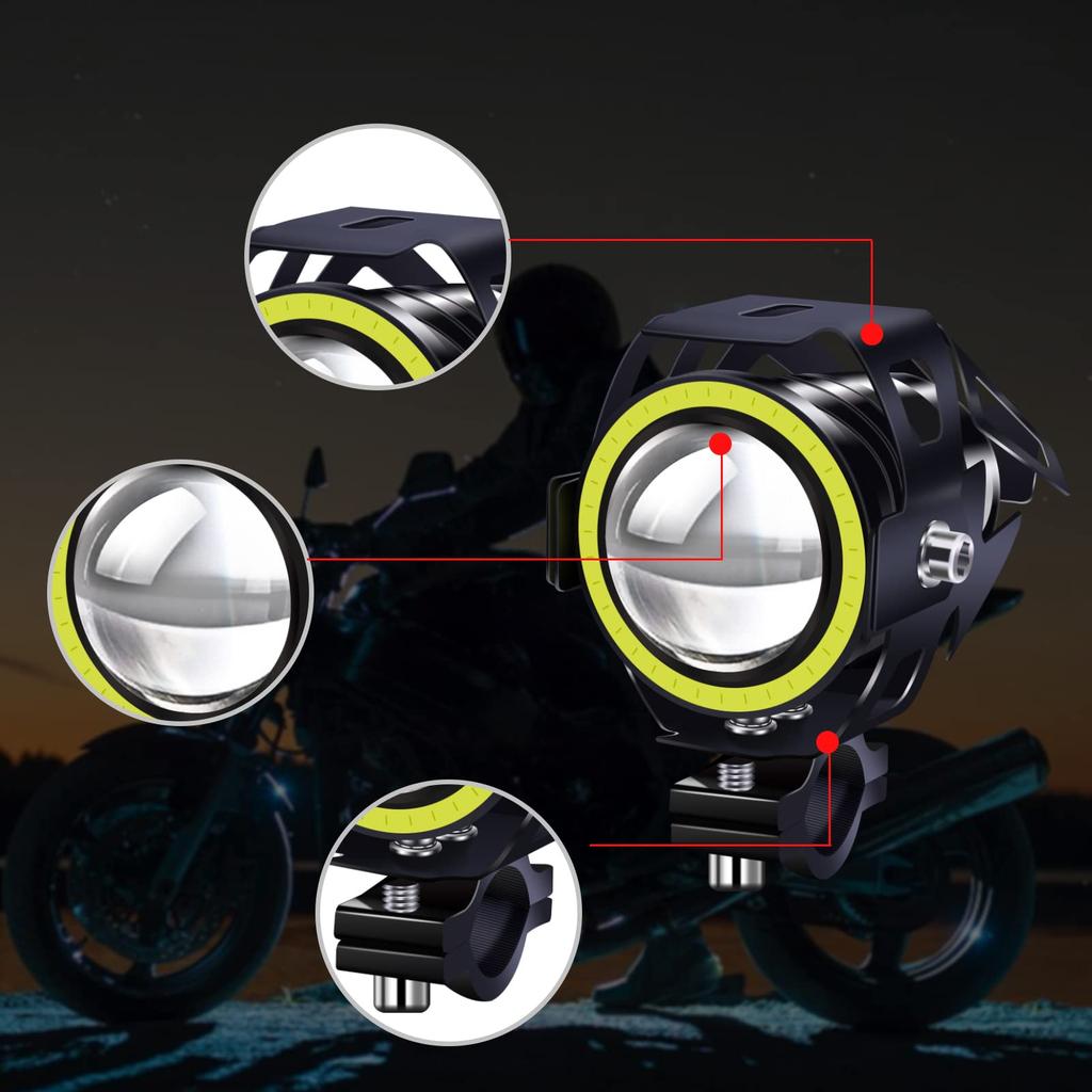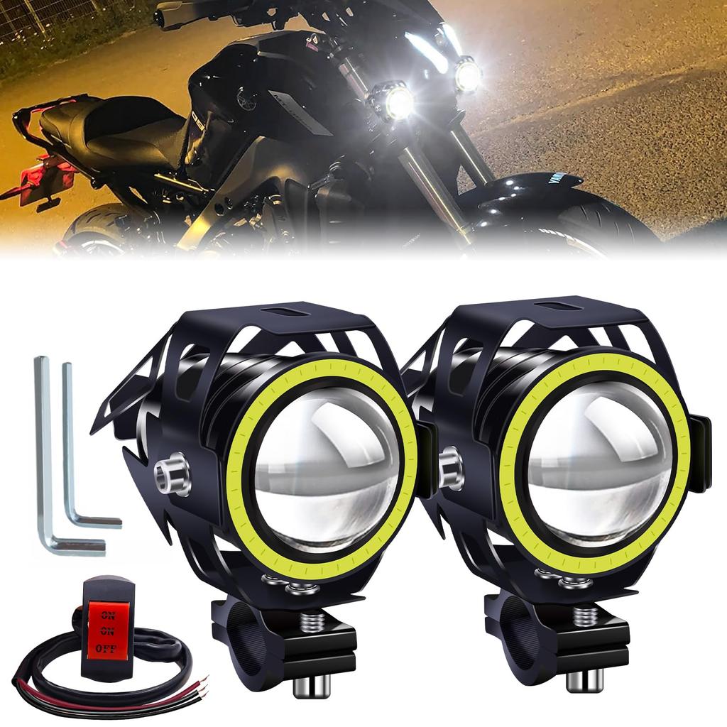 Ygmylandbb Motorcycle LED Fog Lights, Squid Rings, Headlights, Work Lights, Auxiliary Lights, Spotlights, On/Off