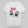 Women's Oversize T-Shirt Cute Cat Love Hearts Playful Tee White Cotton Short