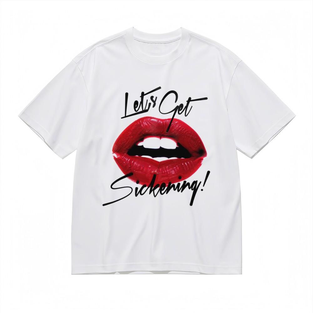 Women's T-shirt With Drag-Inspired Lip Graphic Unisex White 100% Cotton Tops USA