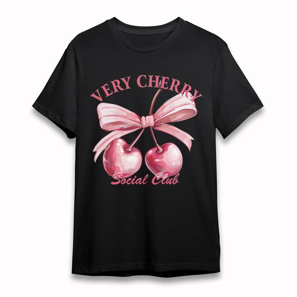 Women's Oversize T-shirt With Sweet Cherry Playful Bow Graphic Unisex Cotton Top