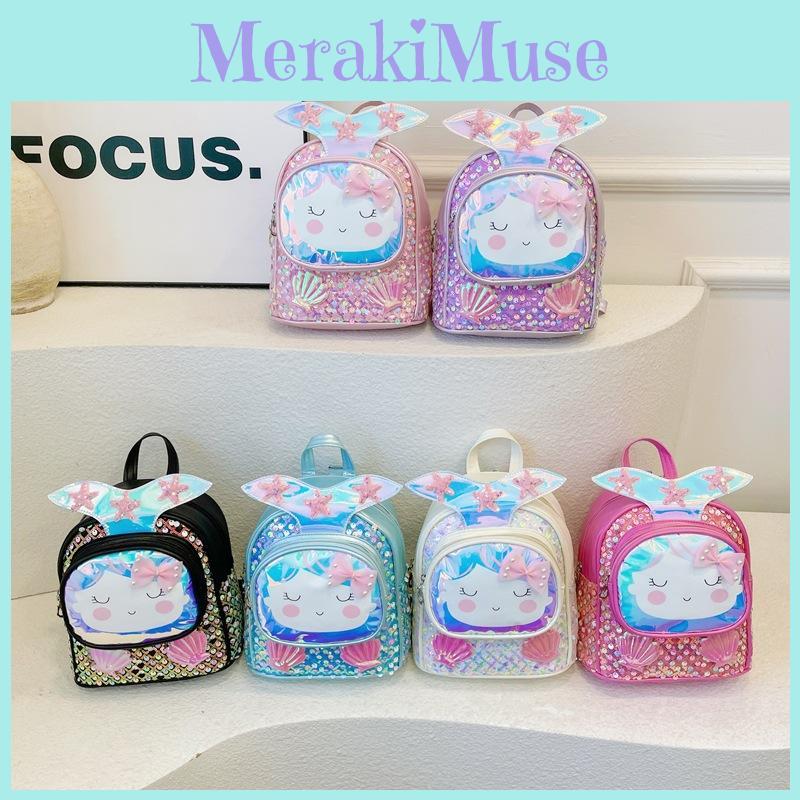 Рюкзак для девочек и детей с блестящей ракушкой и хвостом русалки для использования в детском саду