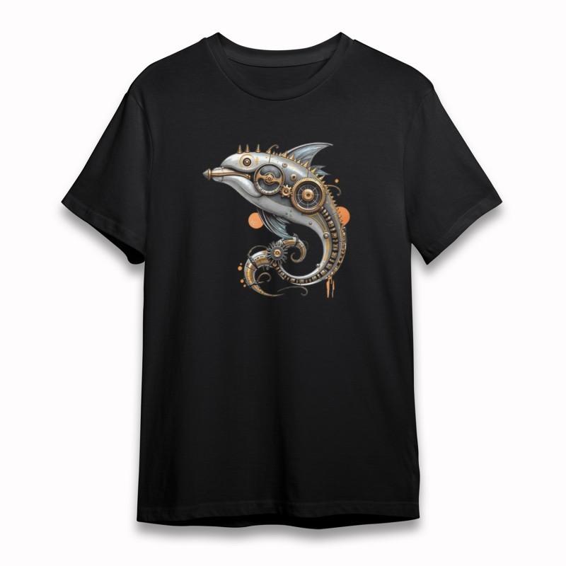 Women's Oversize Soft T-Shirt Steampunk Dolphin with Spiked Head Metallic Fins