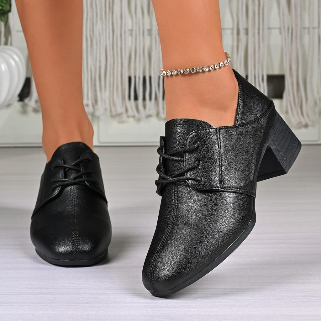 Весна и Осень Новые Женские Повседневные Туфли на Квадратном Каблуке с Круглым Носом Модные и Удобные Банкетные Туфли на Высоком Каблуке Рабочая Обувь