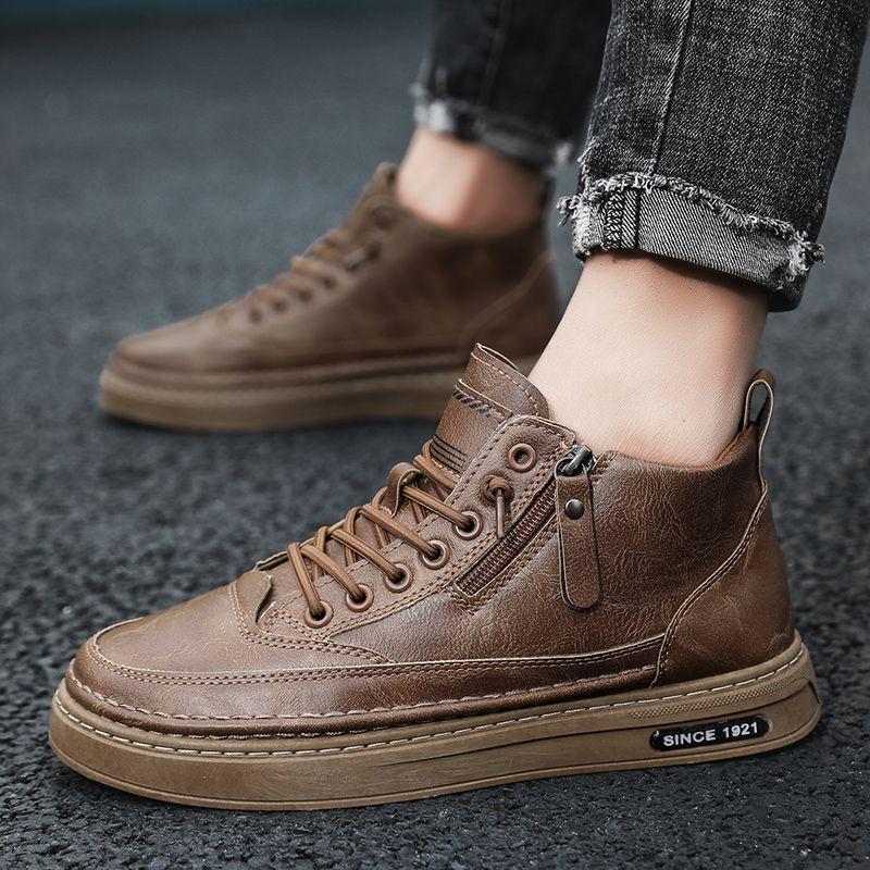 Модные ботильоны Мужские ботинки Зимние Новые Кожаные туфли с высоким верхом Модная хлопковая обувь Деловая уличная повседневная обувь Мужские кроссовки