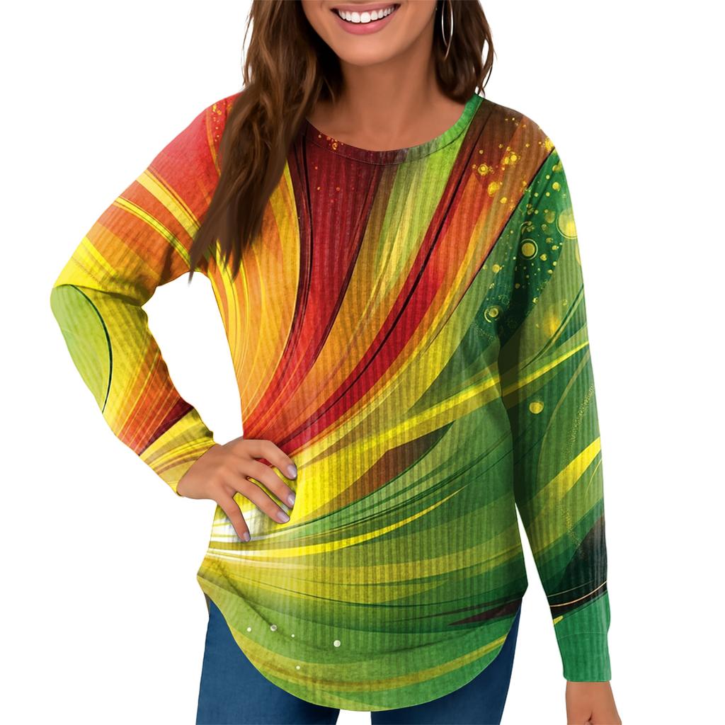 Женская мода Свободный топ с длинным рукавом и карнавальным принтом, с круглым вырезом, повседневный