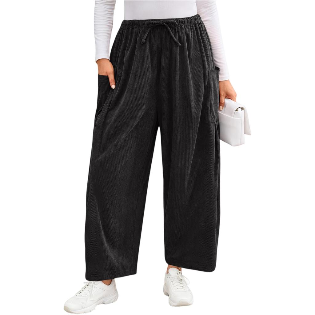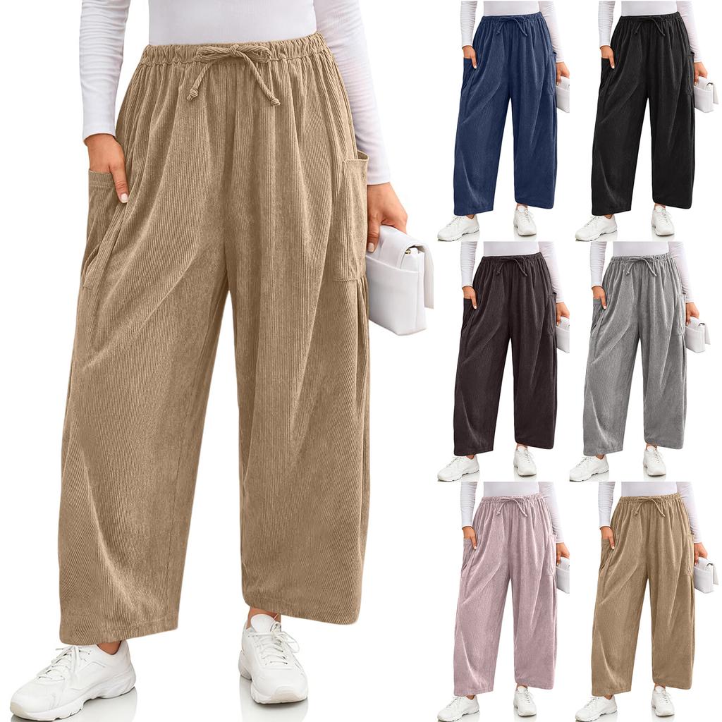 Женские вельветовые брюки повседневные свободные однотонные с широкими штанинами широкого кроя с карманами