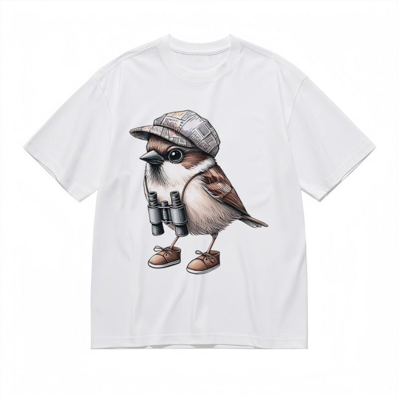 Женская трендовая классическая футболка с причудливой птицей-исследователем, мультяшным графическим принтом, белая