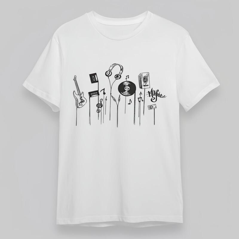 Мужская Классическая Футболка Большого Размера Ретро Музыкальные Символы Принт Виниловой Ленты Хлопковая Футболка