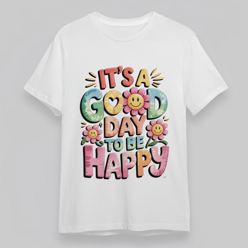 Women's Plus Size Soft Comfortable T-Shirt Colorful Happy Day Floral Message Tee — купить товар онлайн с бесплатной доставкой по всему миру!