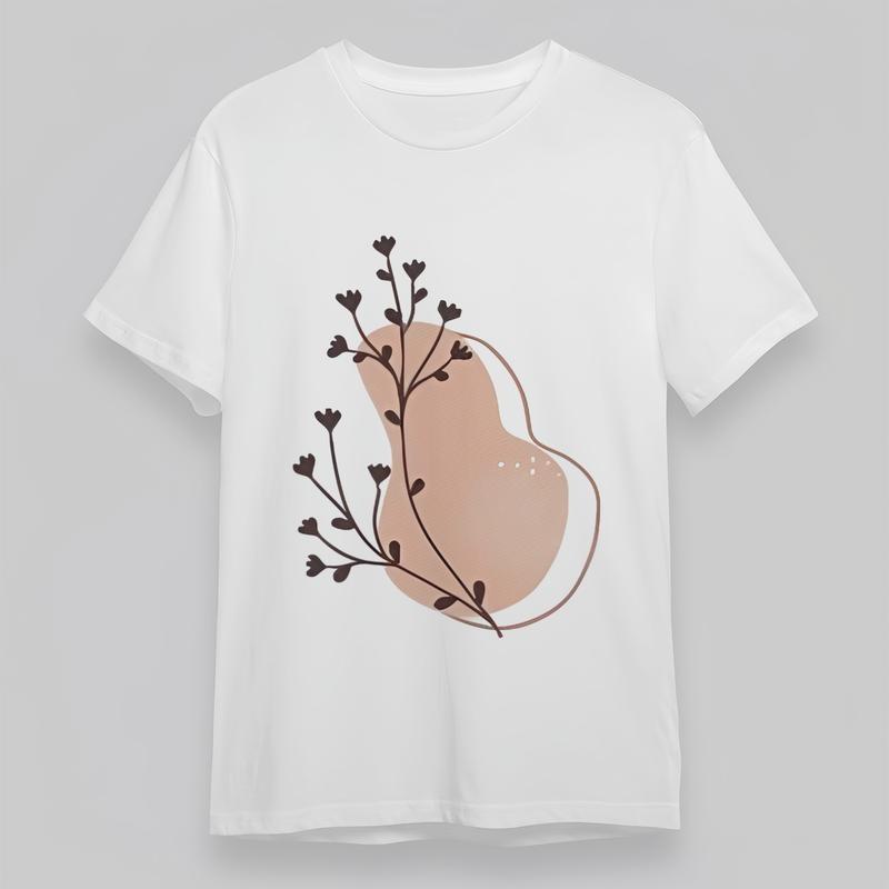 Женская дышащая классическая футболка большого размера с цветочной ветвью и геометрическим принтом