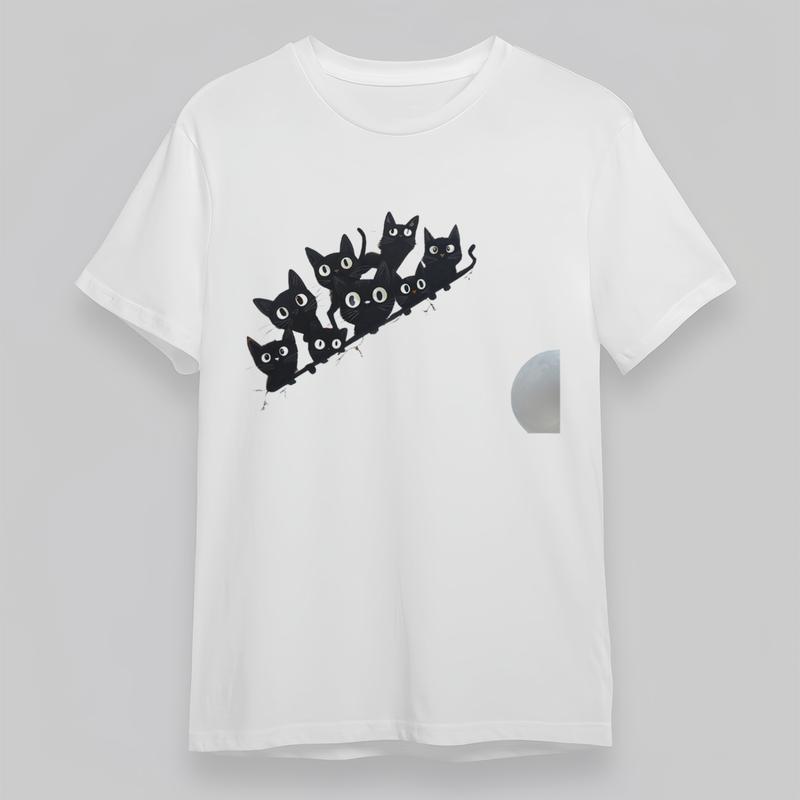 Women's Oversize soft Trend Comfortable Classic T-Shirt Black Cats Graphic Tee