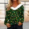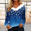 Женская футболка с рождественским принтом, вечерние рубашки с длинным рукавом, рождественский флисовый воротник, топ с v-образным вырезом