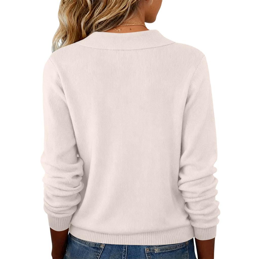 Женский модный повседневный трикотажный топ-свитер с V-образным вырезом и длинными рукавами