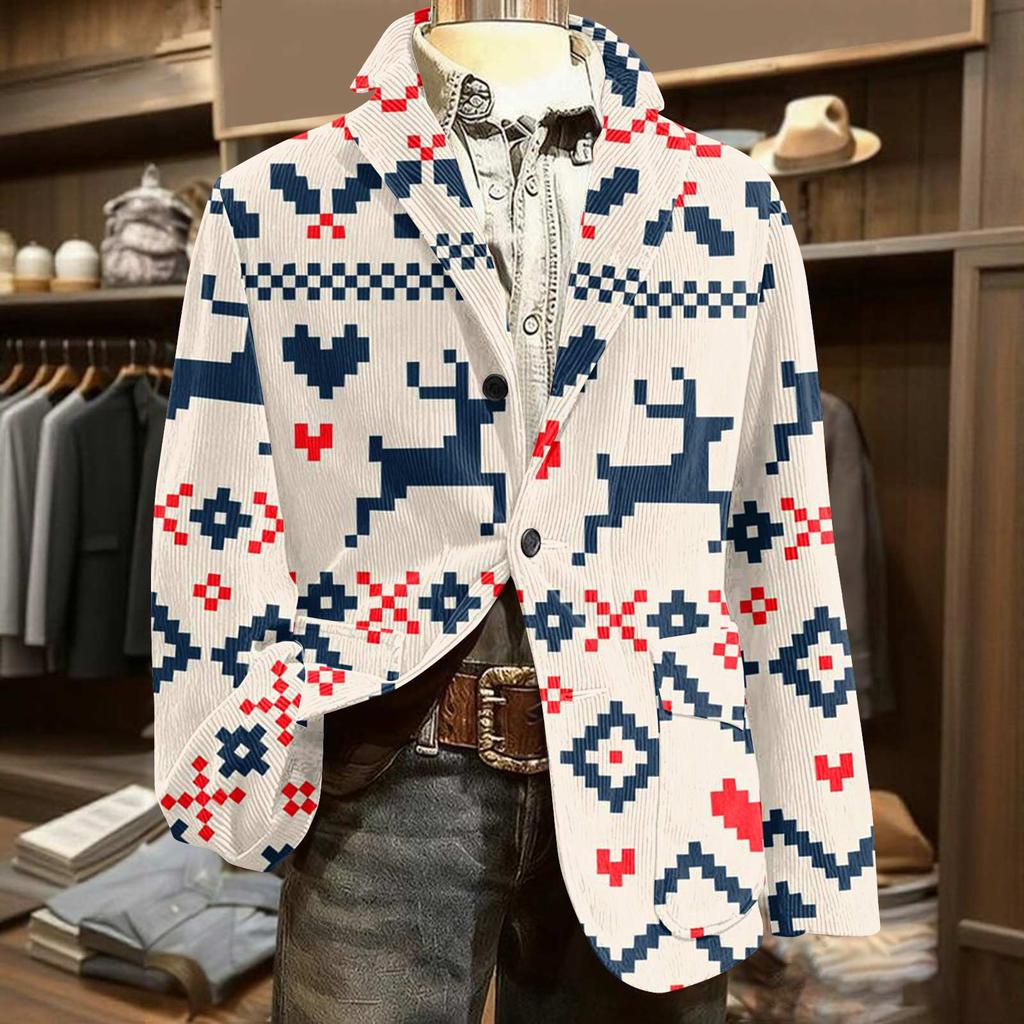 Мужской вельветовый теплый пиджак-кардиган с принтом и карманами, мужской повседневный костюм
