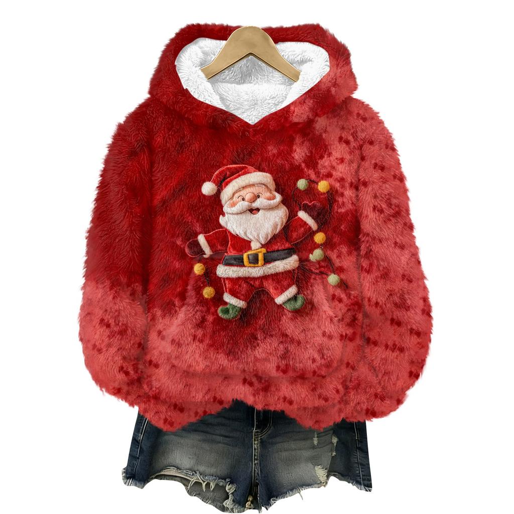 Женская фланелевая толстовка с капюшоном и длинными рукавами с рождественским принтом