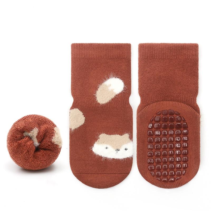 Детские зимние утолщенные носки, детские противоскользящие носки для пола, для мальчиков и девочек, мультяшные хлопковые махровые теплые нескользящие носки-гольфы для новорожденных