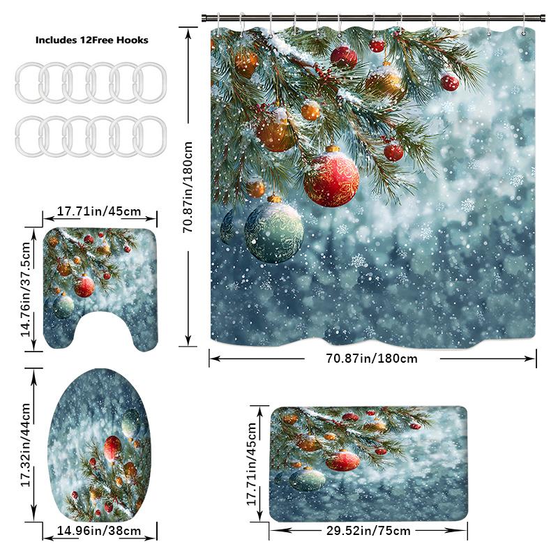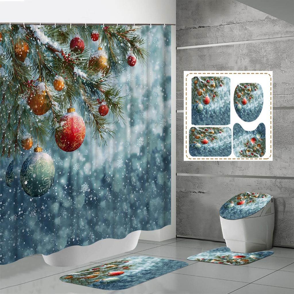 4 ШТ. Наборы штор для душа со шторкой для душа и ковриками, коврик для крышки унитаза, U-образный коврик и коврик для ванной, набор для ванной комнаты с 12 крючками