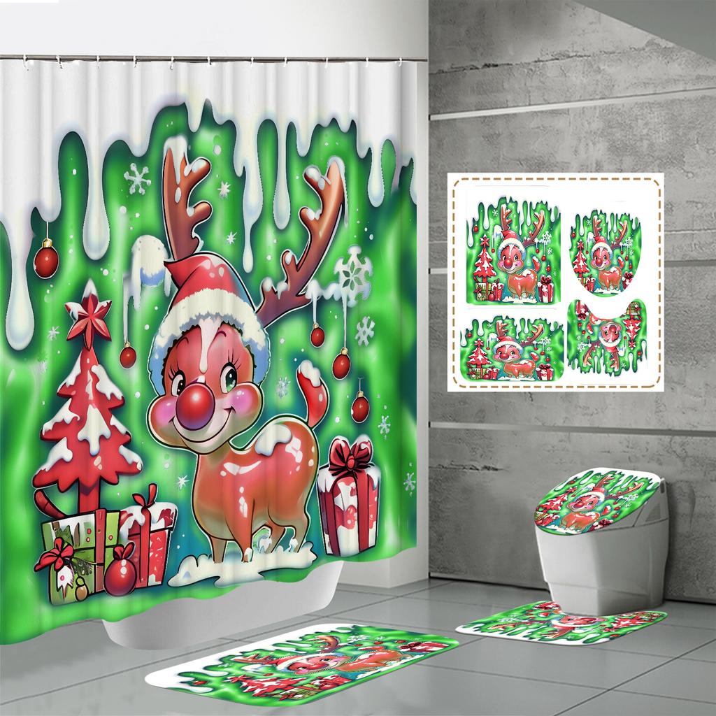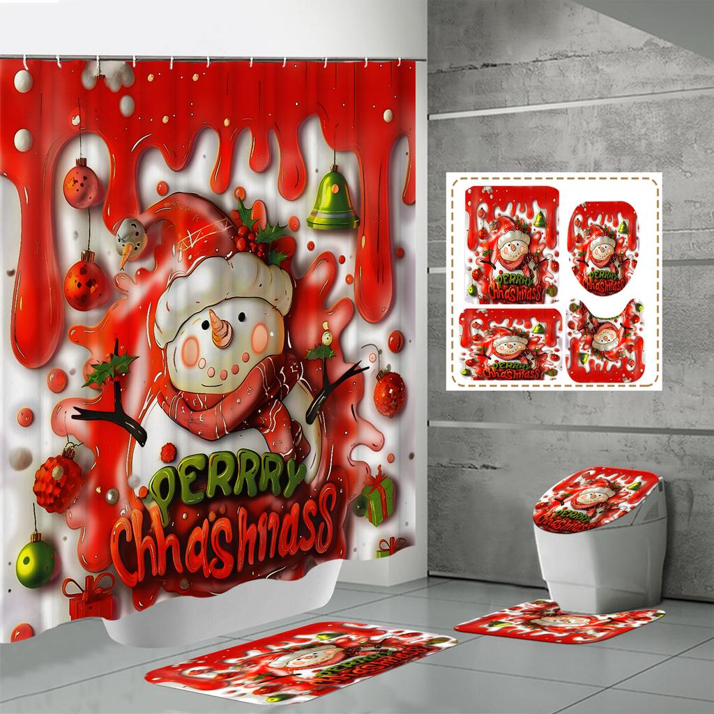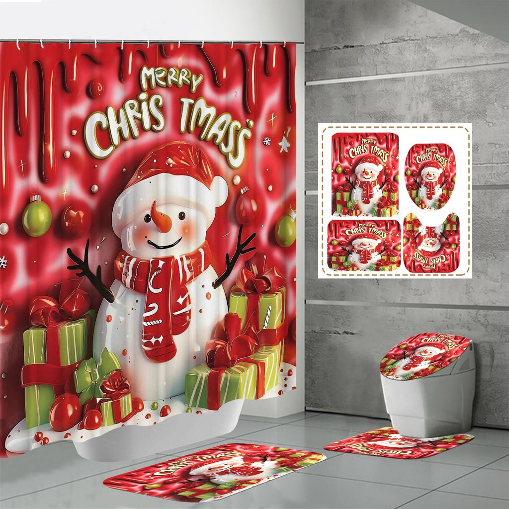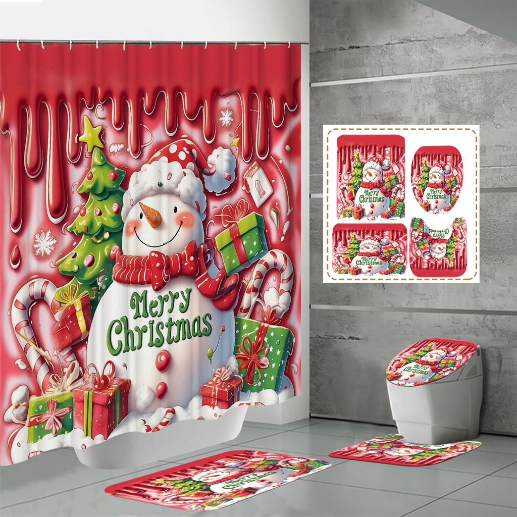 4 ШТ. Наборы штор для душа со шторкой для душа и ковриками, коврик для крышки унитаза, U-образный коврик и коврик для ванной, набор для ванной комнаты с 12 крючками