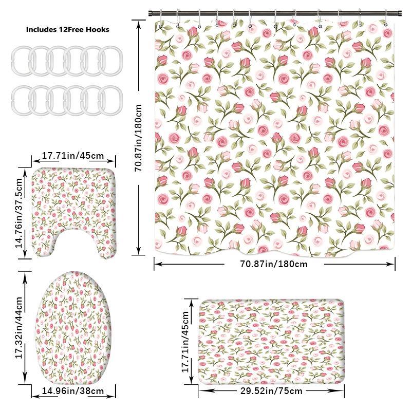 4 ШТ. Наборы штор для душа со шторкой для душа и ковриками, коврик для крышки унитаза, U-образный коврик и коврик для ванной, набор для ванной комнаты с 12 крючками