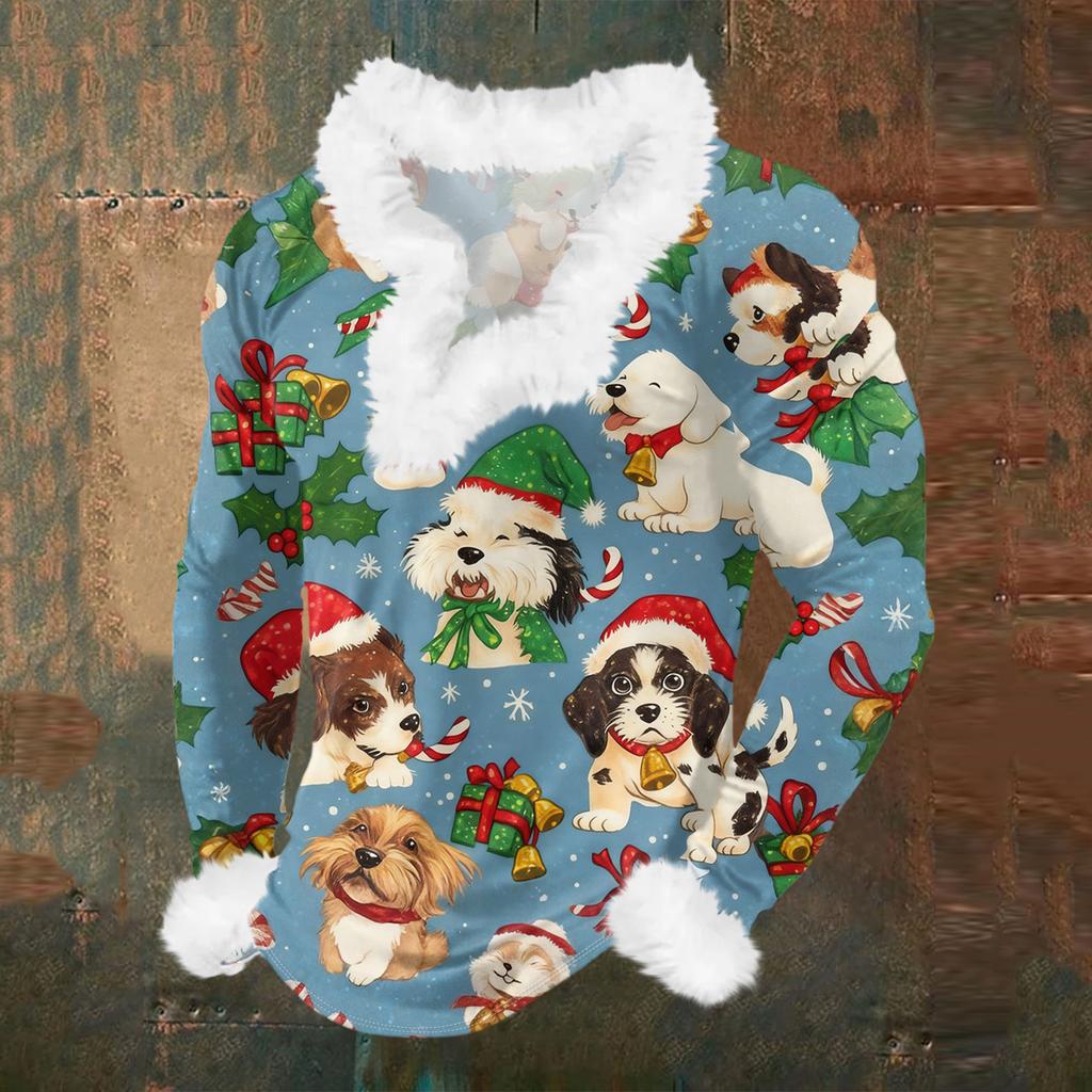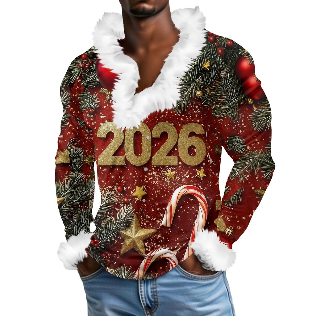 Мужской повседневный рождественский плюшевый свитшот с V-образным вырезом и длинными рукавами из флиса