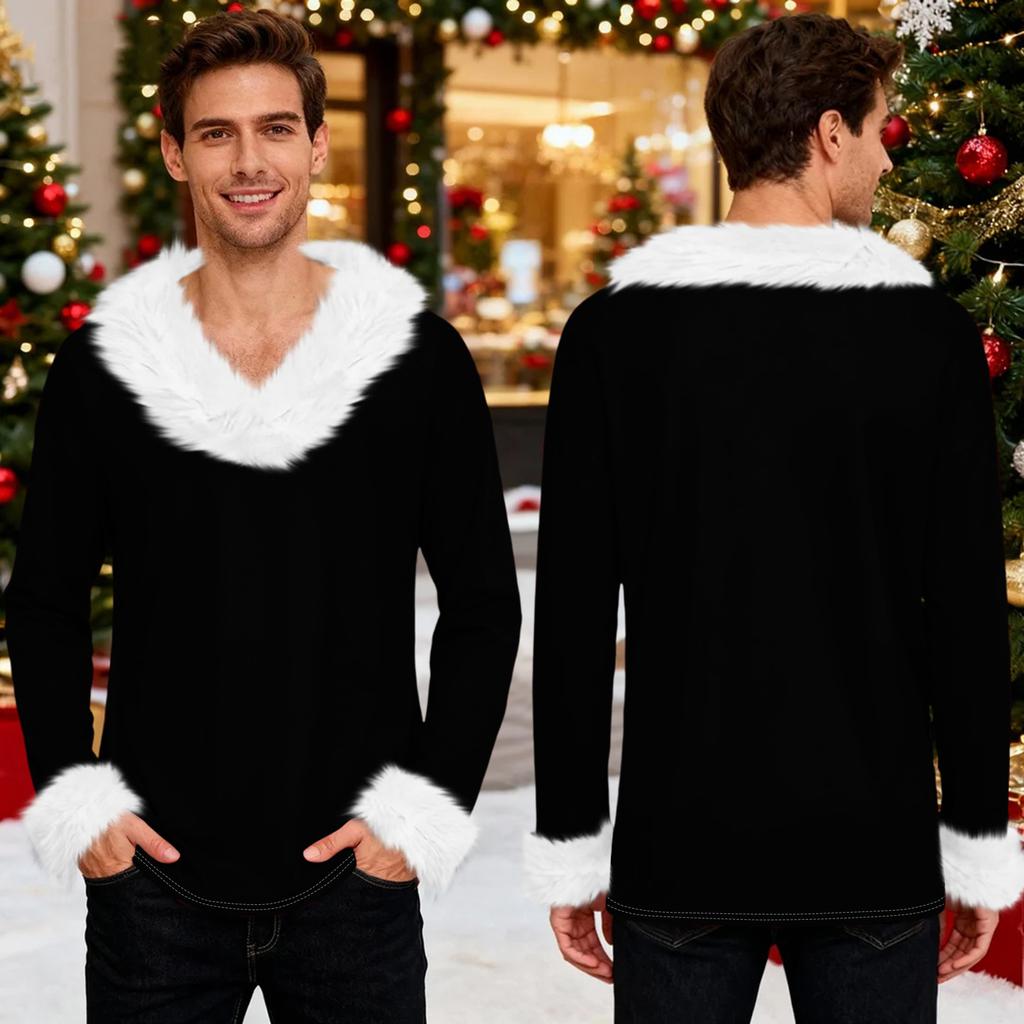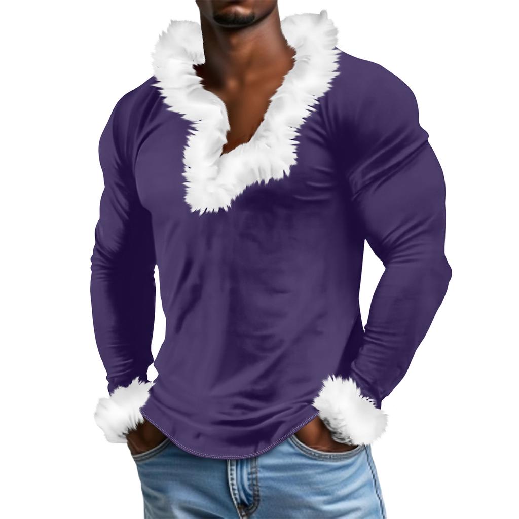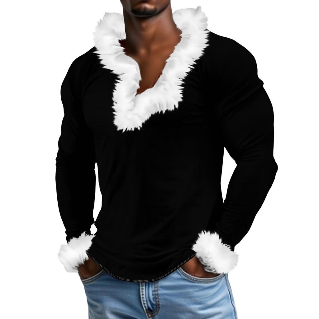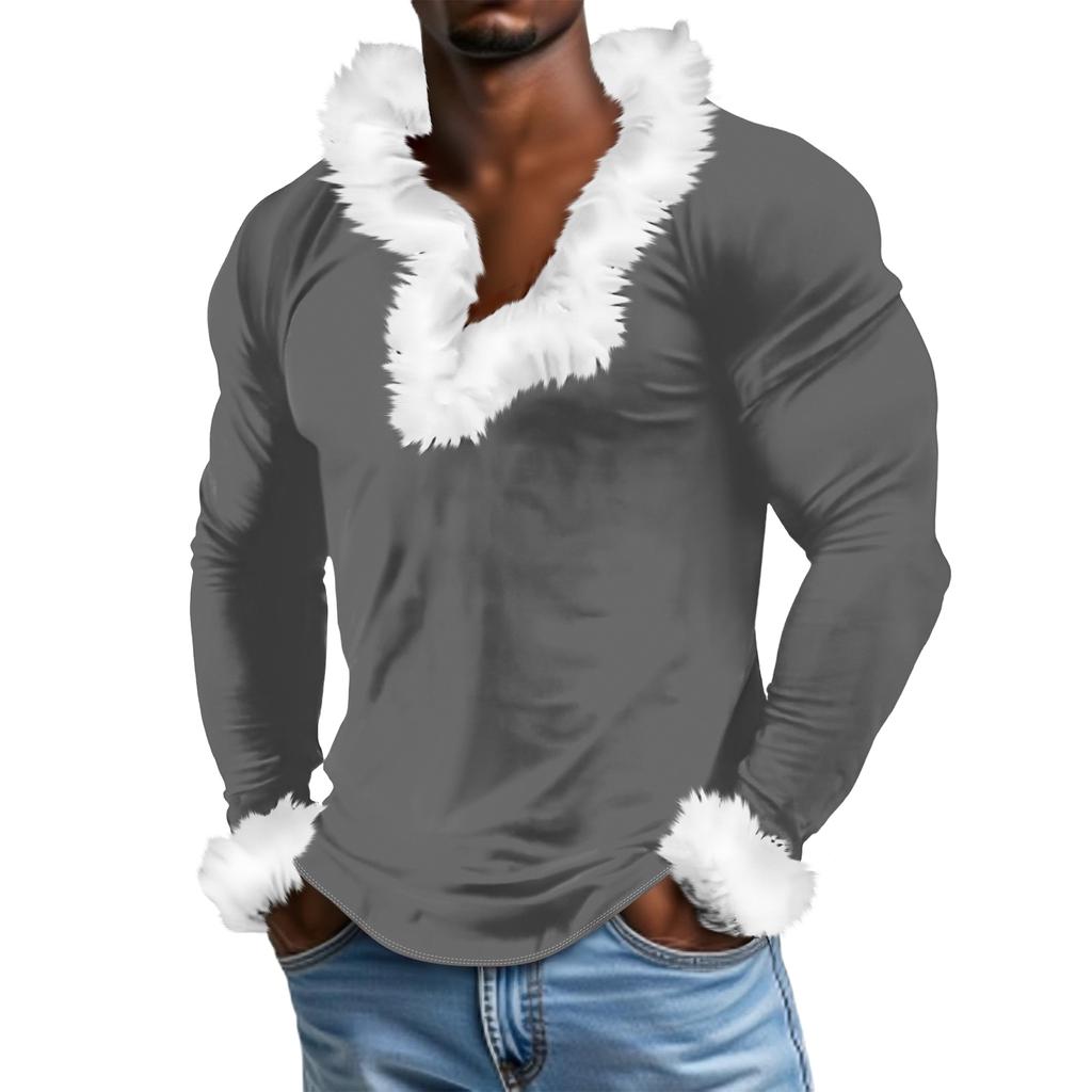 Мужской повседневный однотонный плюшевый свитер с V-образным вырезом и флисовой подкладкой, теплый, с длинными рукавами
