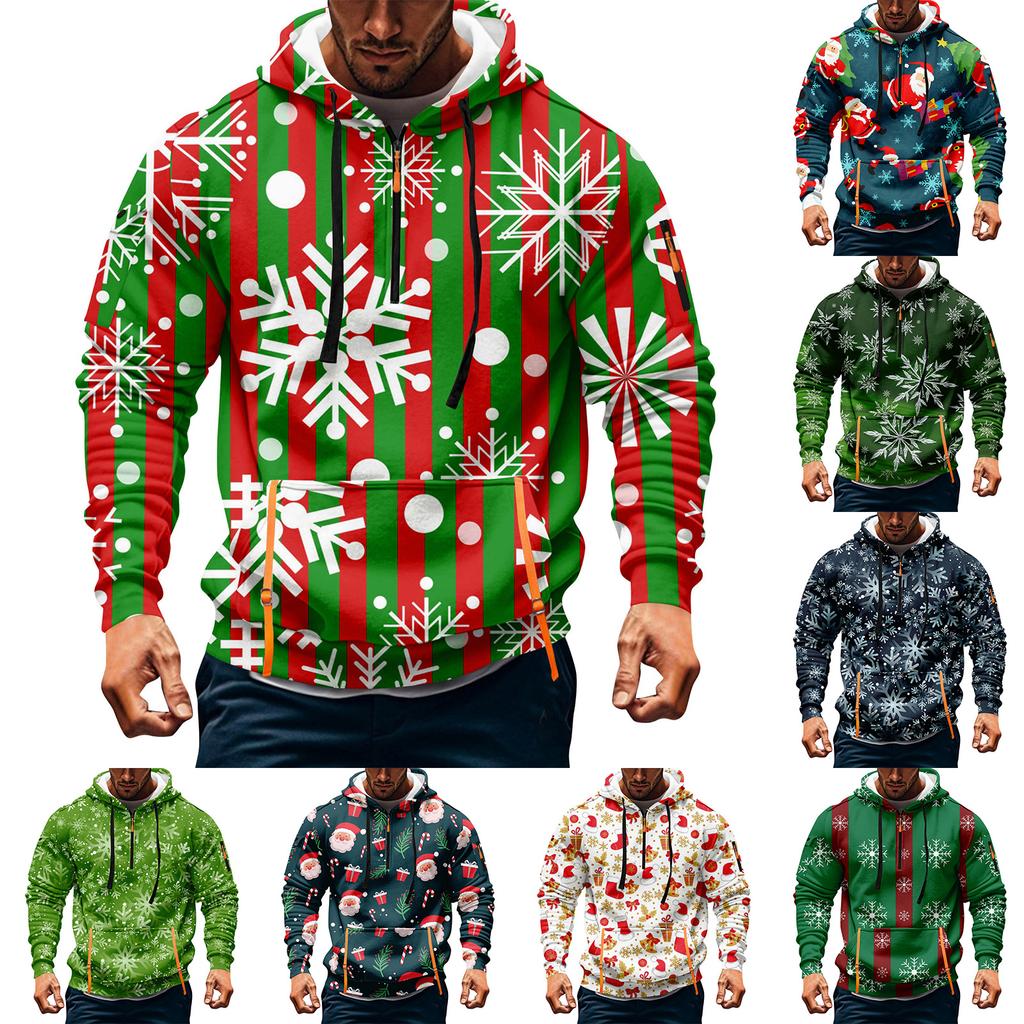Мужская толстовка с капюшоном на молнии до середины, повседневная спортивная с рождественским принтом — купить товар онлайн с бесплатной доставкой по всему миру!