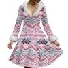 Женское повседневное платье с V-образным вырезом, рождественским принтом, плюшевыми длинными рукавами