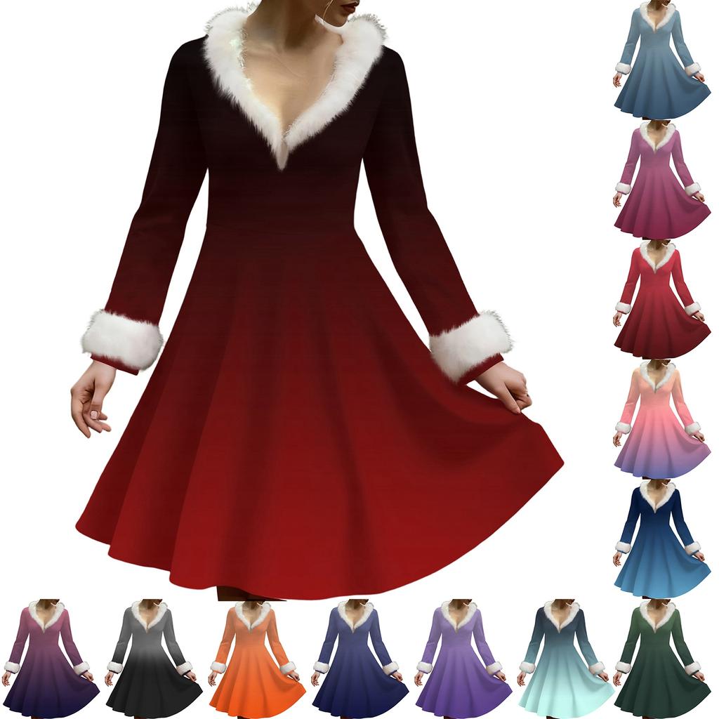 Женское повседневное платье с V-образным вырезом, рождественским принтом, плюшевыми длинными рукавами — купить товар онлайн с бесплатной доставкой по всему миру!
