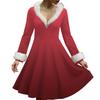 Женское повседневное платье с V-образным вырезом, рождественским принтом, плюшевыми длинными рукавами