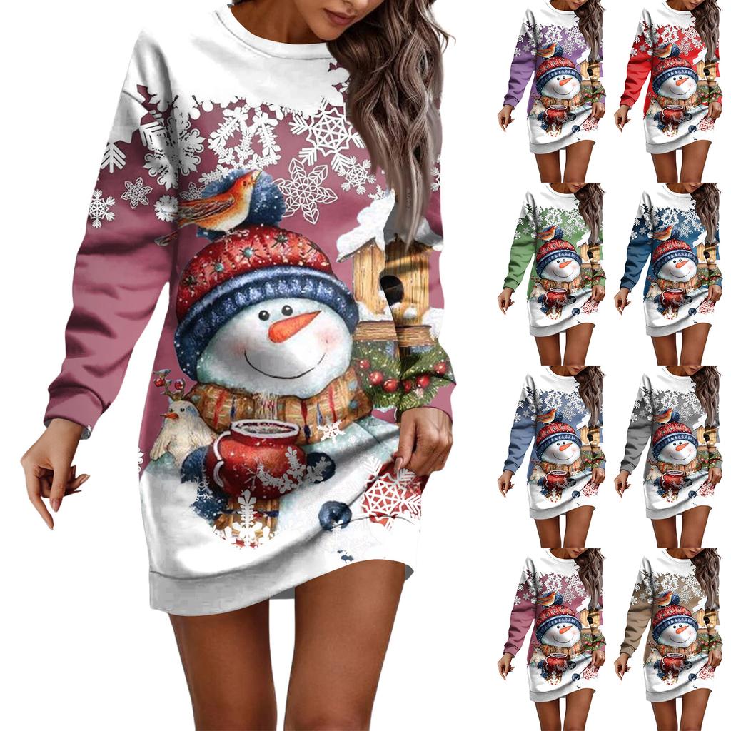 Платье с длинным рукавом для женщин, повседневное рождественское пуловер с принтом, платье на бедрах, платье-свитер