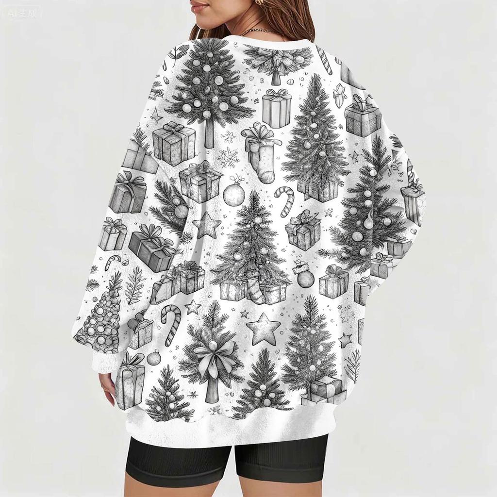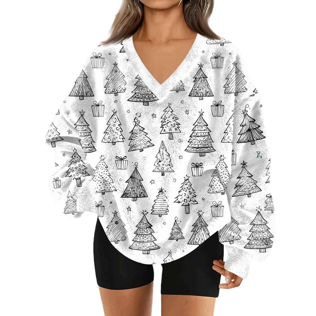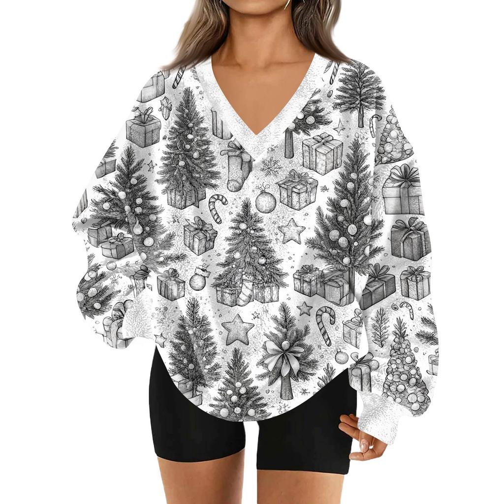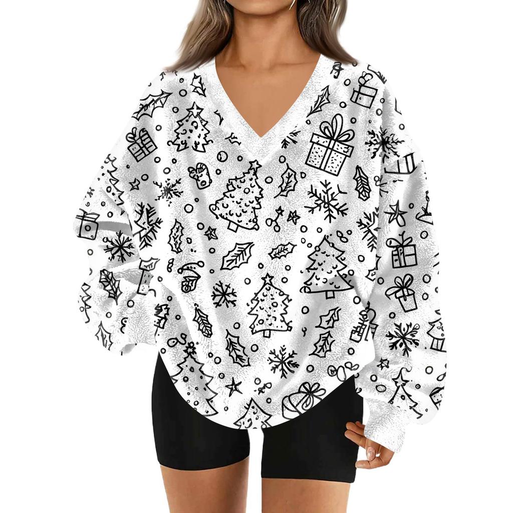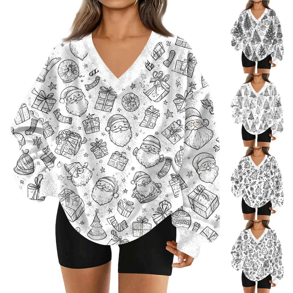 Женская модная повседневная толстовка с длинным рукавом и V-образным вырезом с рождественским принтом