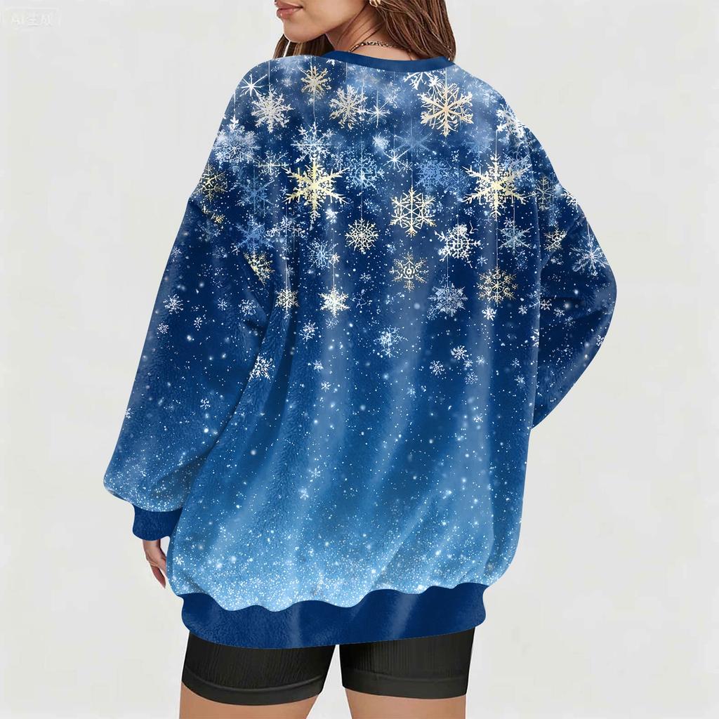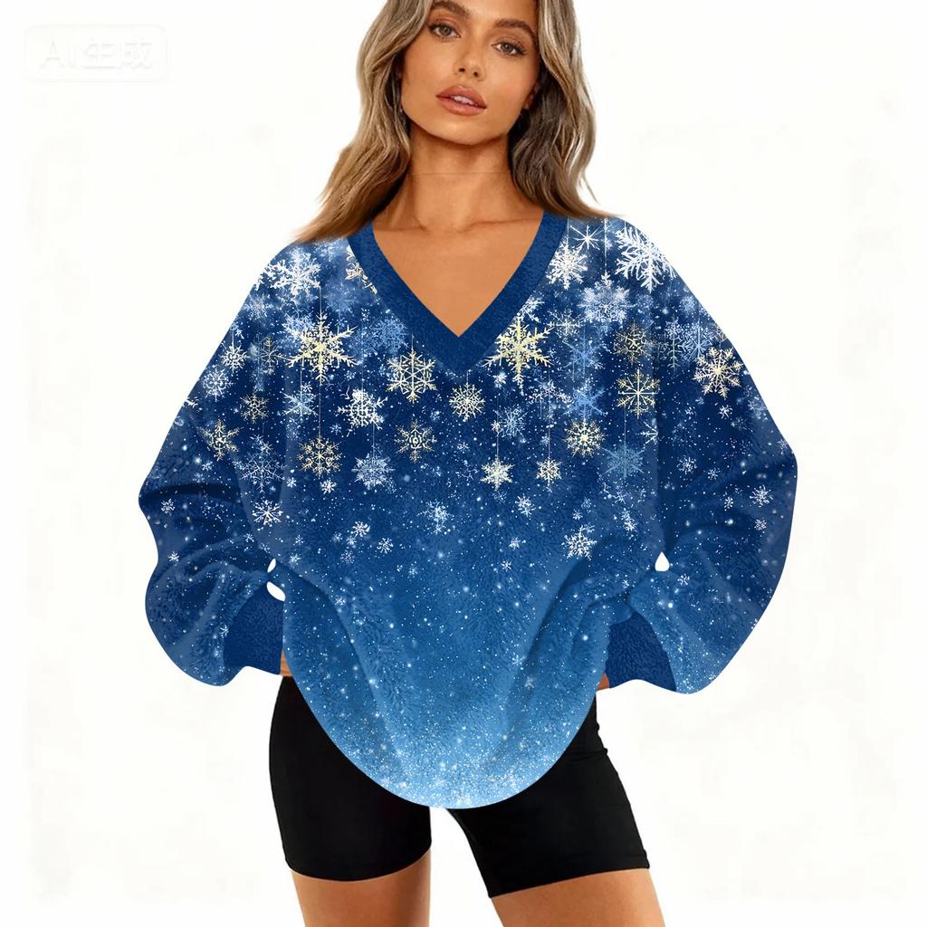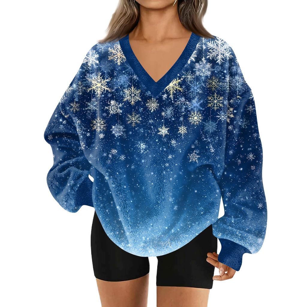 Женская модная повседневная толстовка с длинным рукавом и V-образным вырезом с рождественским принтом