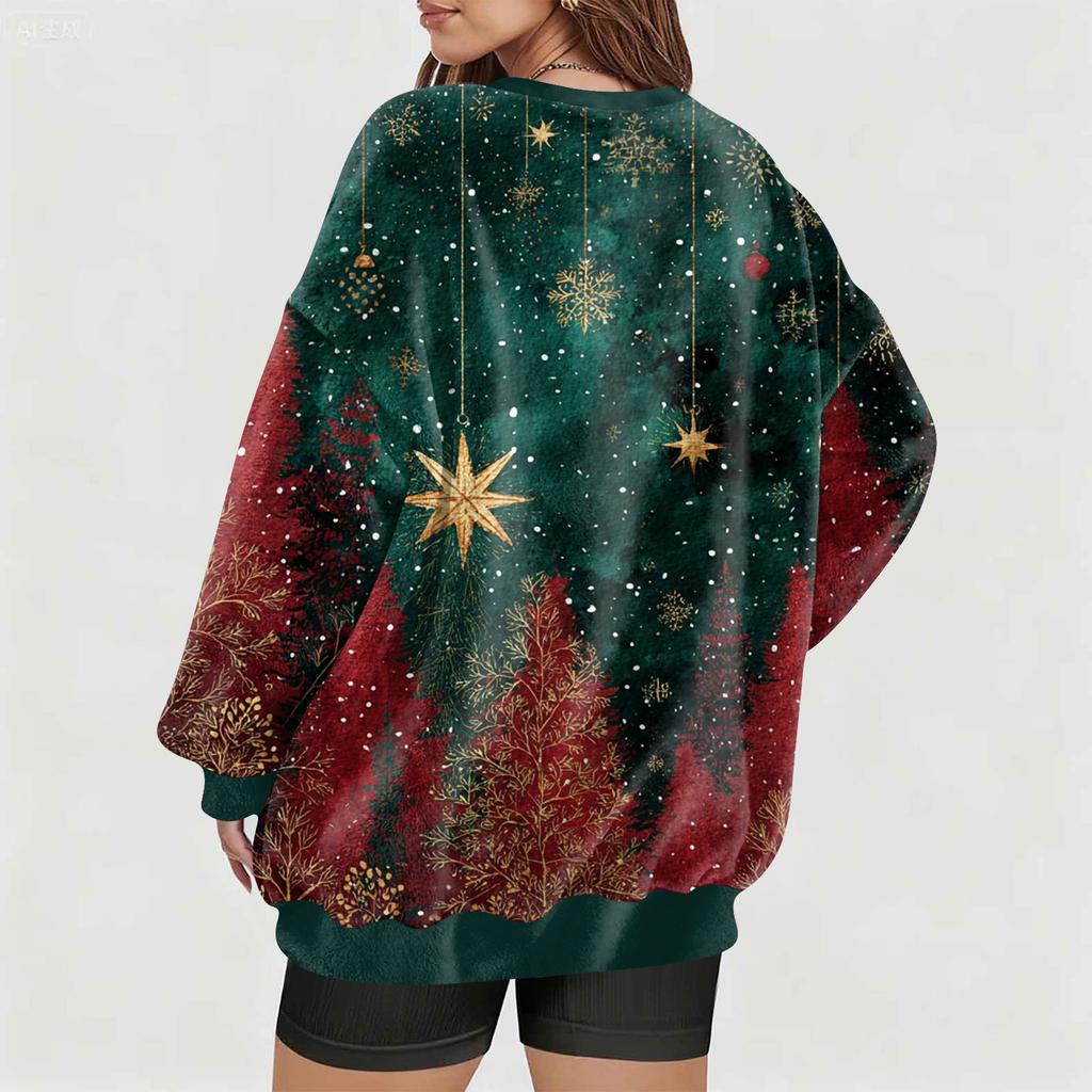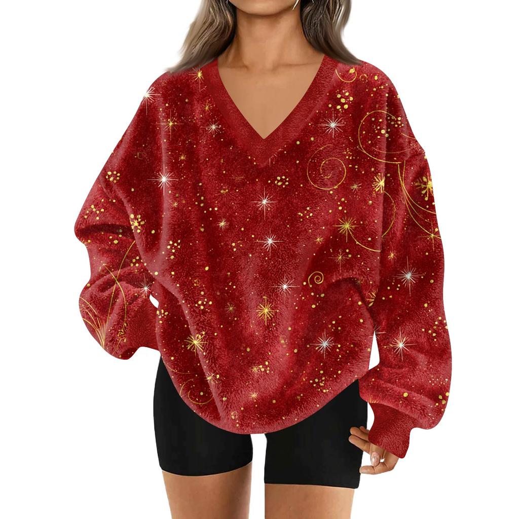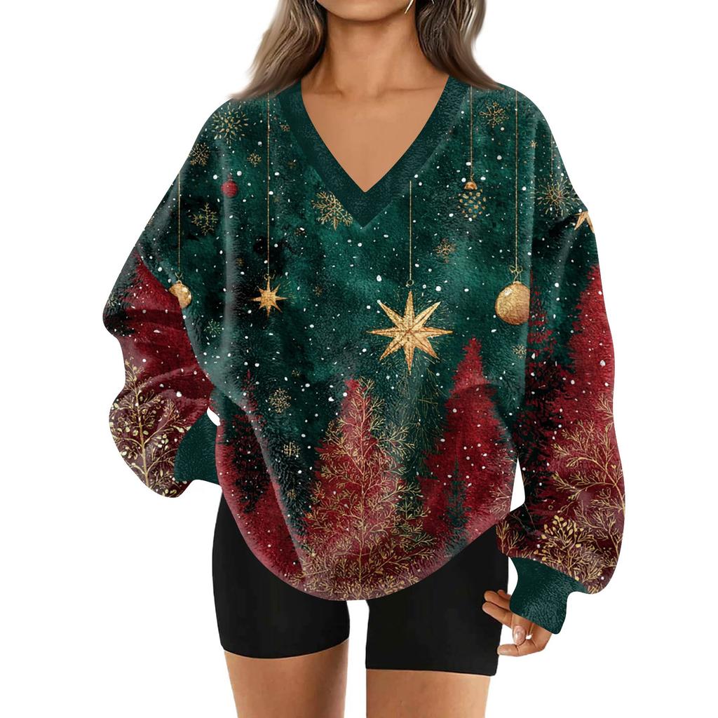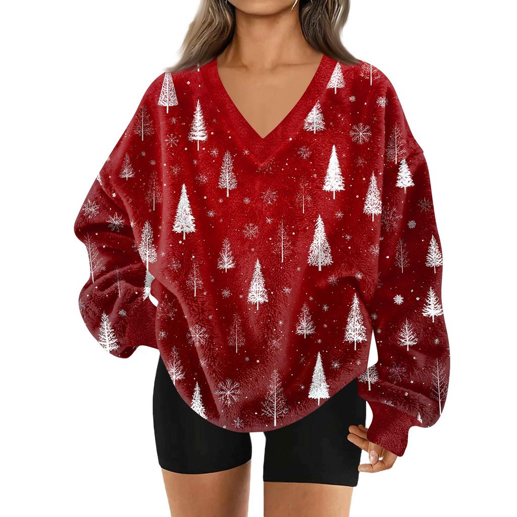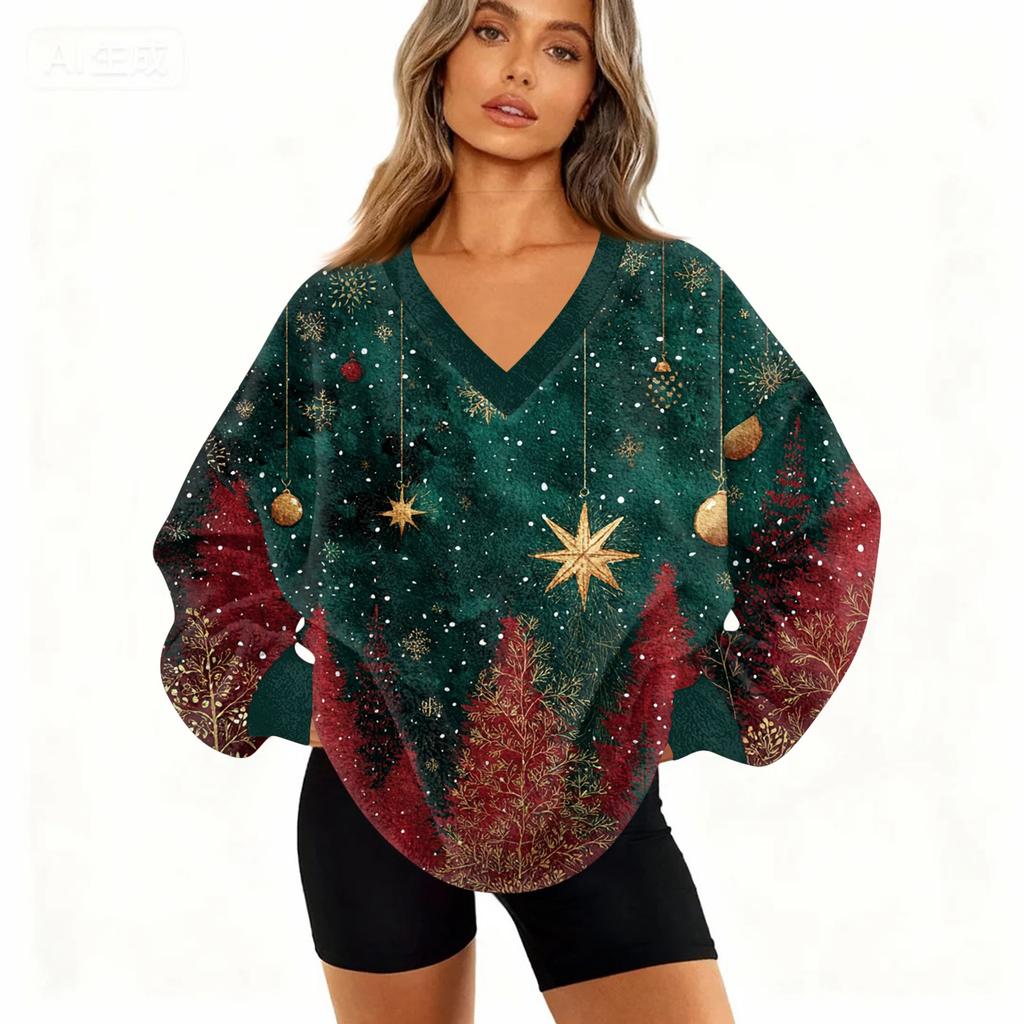 Женская модная повседневная толстовка с длинным рукавом и V-образным вырезом с рождественским принтом