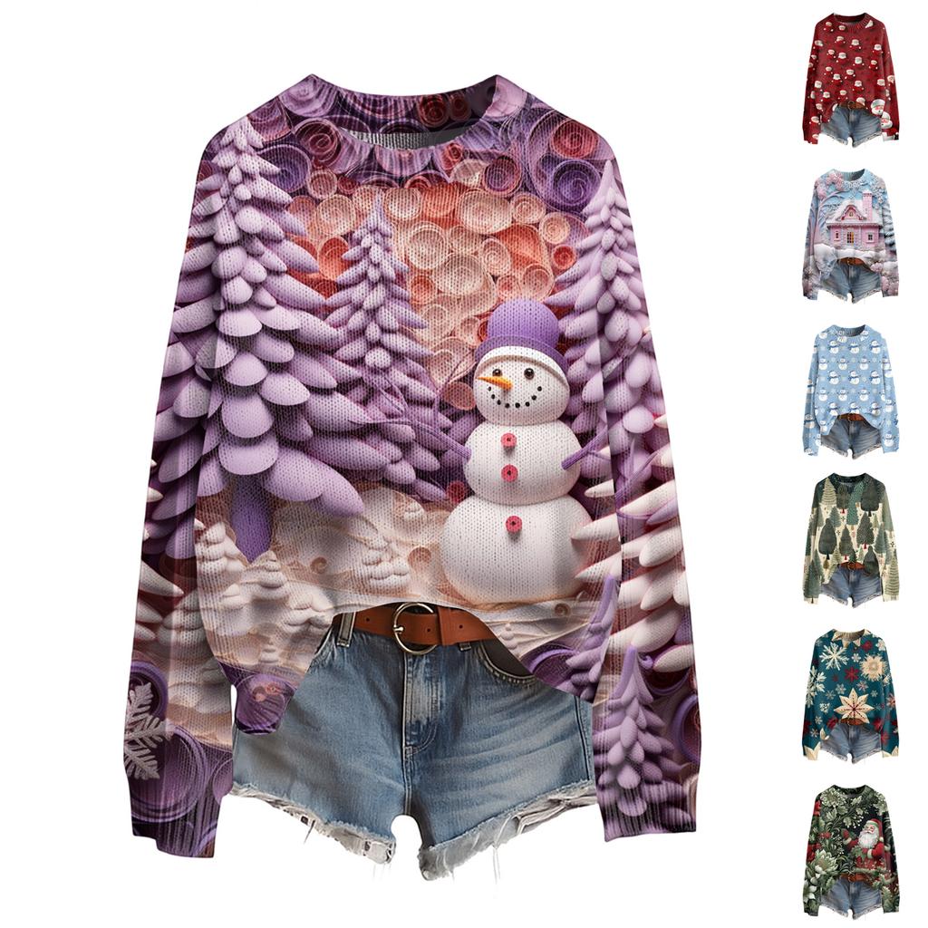 Женский смешной женский рождественский свитер с круглым вырезом, рождественский джемпер, рождественский наряд, уродливый свитшот, рождественский костюм