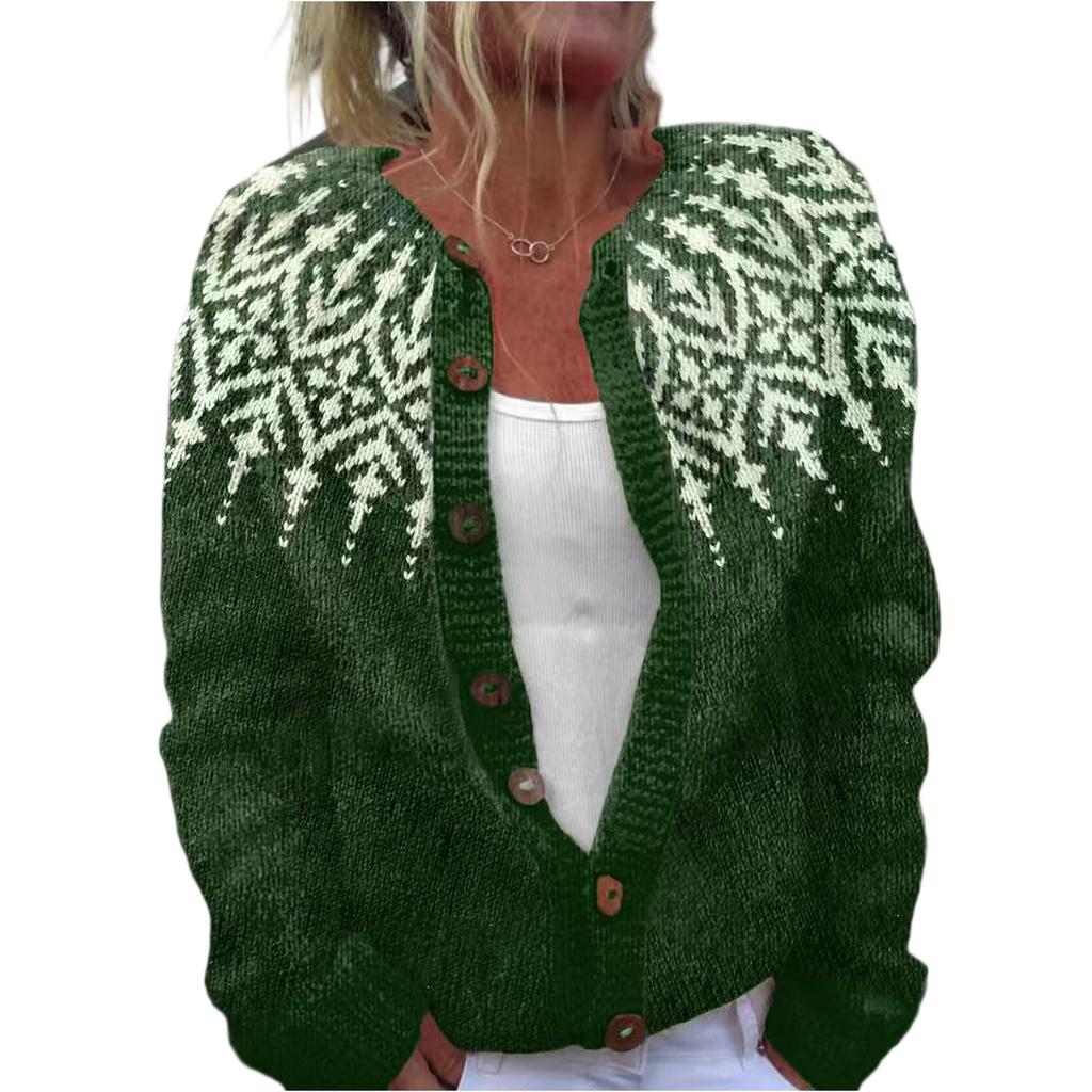 Кардиганы в стиле Fair Isle для женщин, с круглым вырезом, свободного кроя, на пуговицах, объемный свитер, с открытой передней частью, повседневная вязаная куртка на осень