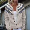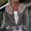 Кардиганы в стиле Fair Isle для женщин, с круглым вырезом, свободного кроя, на пуговицах, объемный свитер, с открытой передней частью, повседневная вязаная куртка на осень