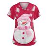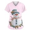 Женский модный рабочий топ с V-образным вырезом, рождественским принтом, короткими рукавами, карманом, боковым разрезом, базовый пуловер