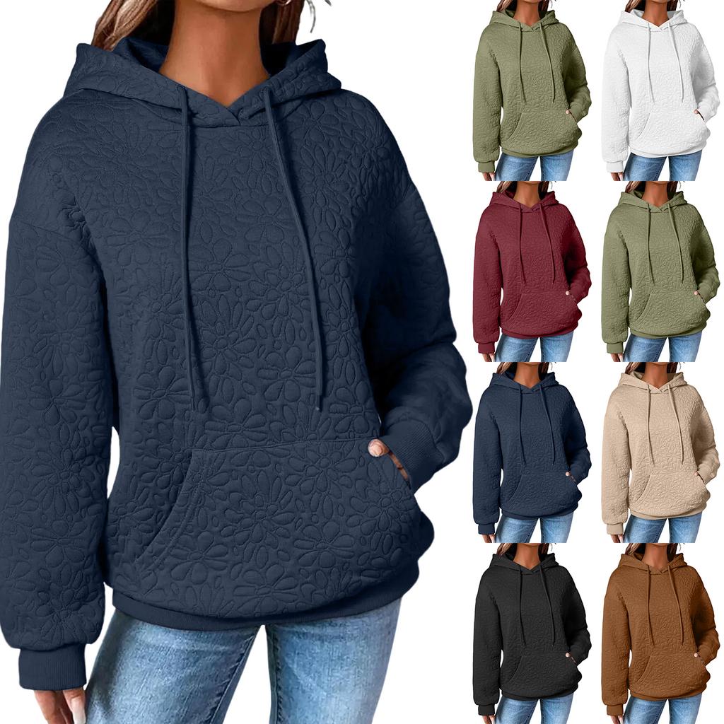 Женский модный худи с текстурой, однотонный, с капюшоном, с длинными рукавами