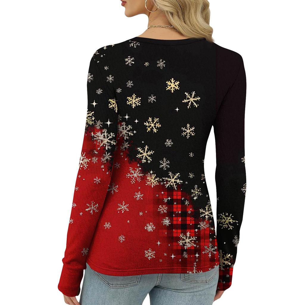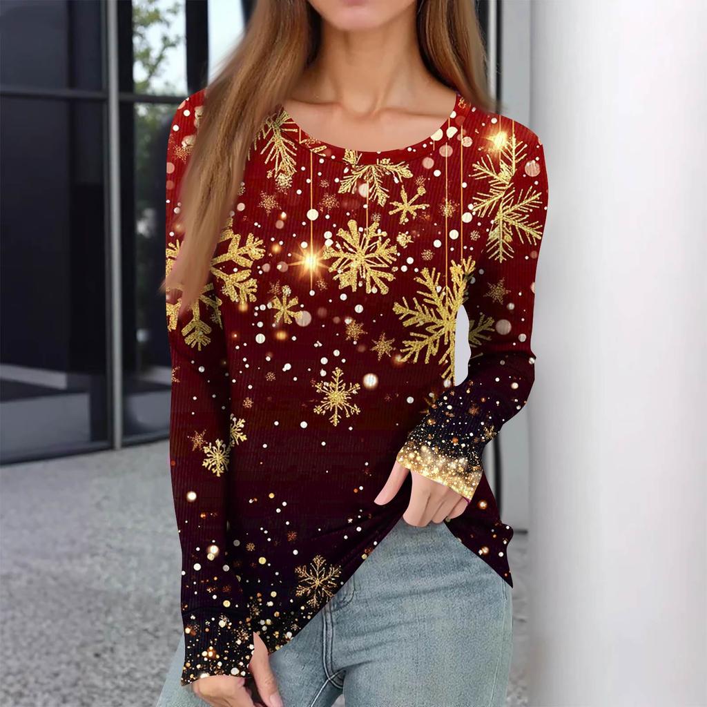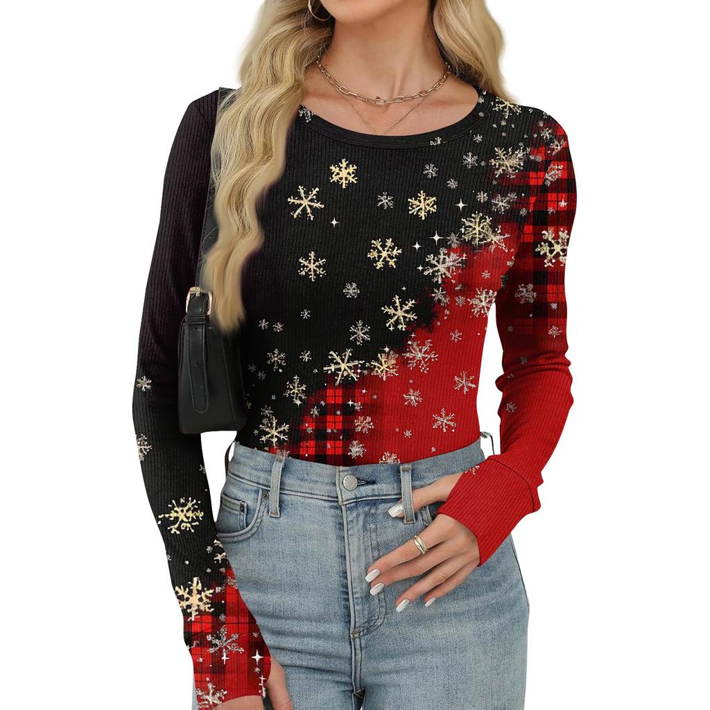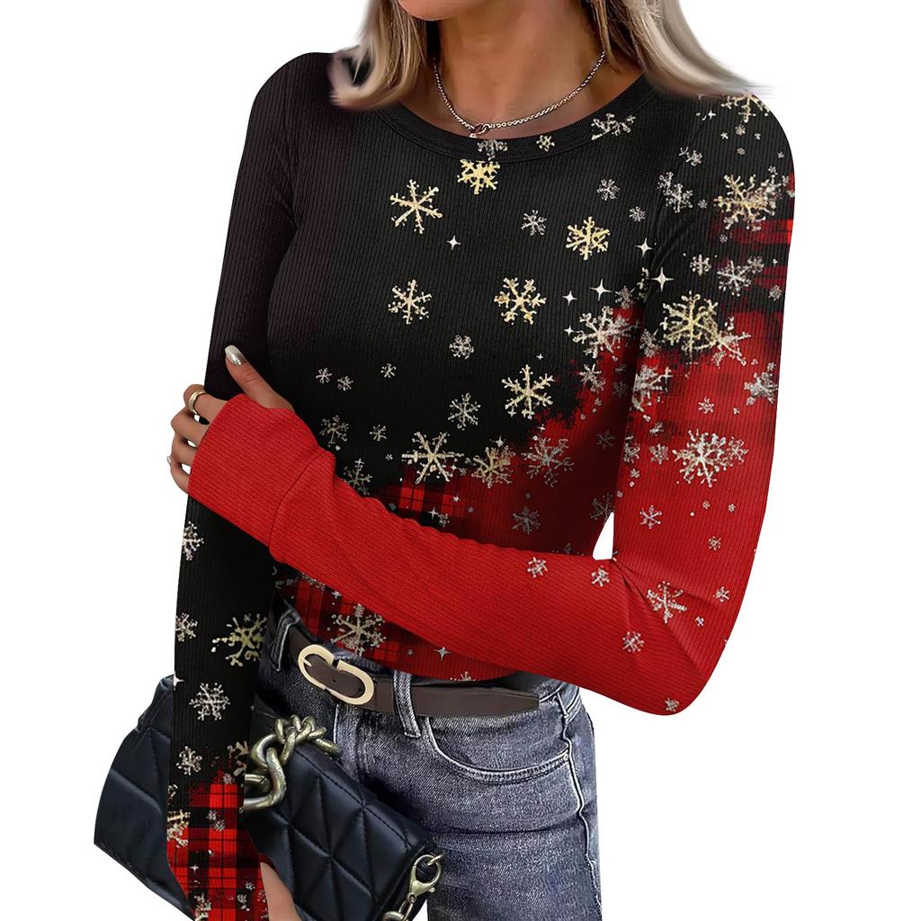 Женская зимняя приталенная футболка Модная повседневная с градиентным принтом с круглым вырезом пуловер с длинным рукавом топ