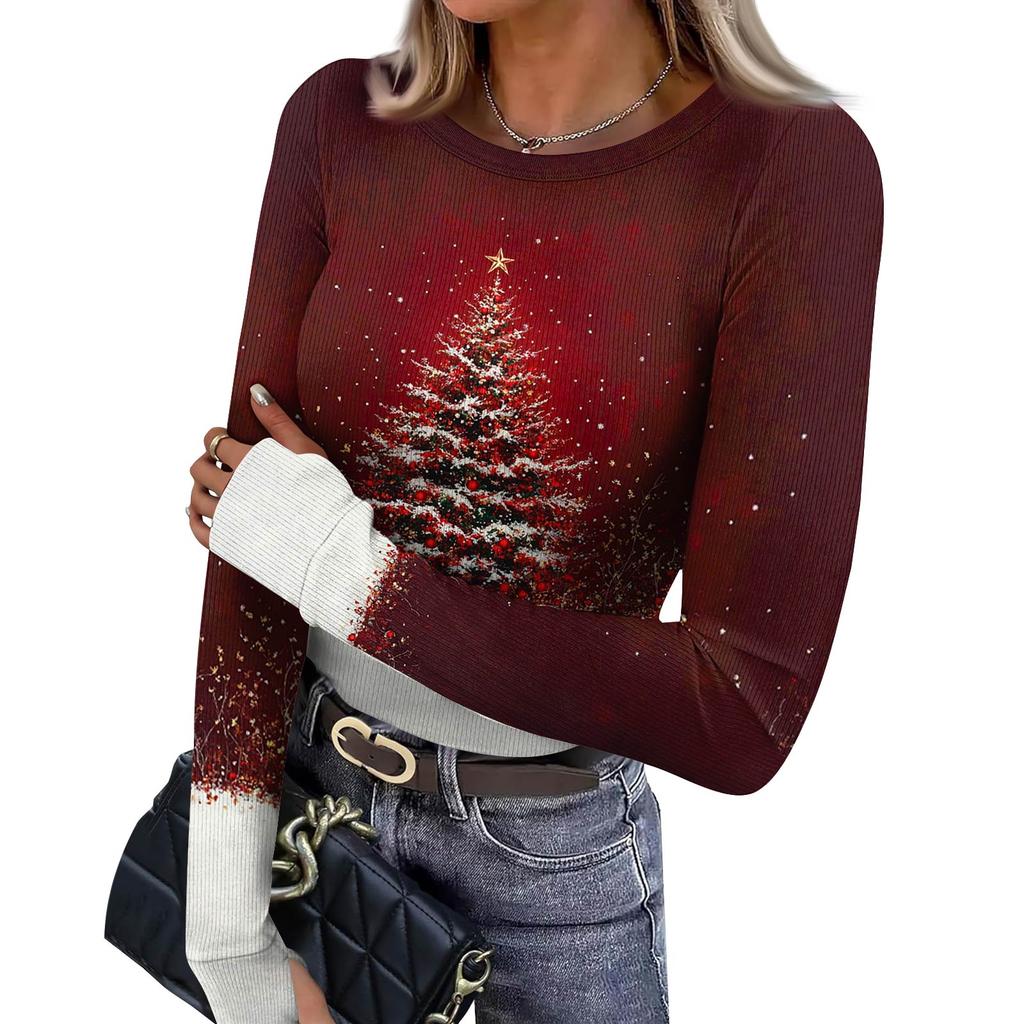 Женская зимняя приталенная футболка Модная повседневная с градиентным принтом с круглым вырезом пуловер с длинным рукавом топ