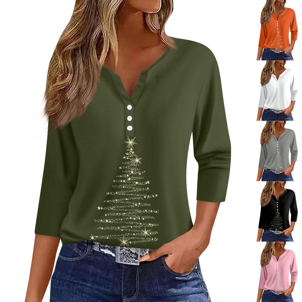 Жен. Футболка Футболка С принтом Пуговицы Рукав 3/4 Повседневные Выходные Мода Классический Классический V-образный вырез Обычный Верх — купить товар онлайн с бесплатной доставкой по всему миру!