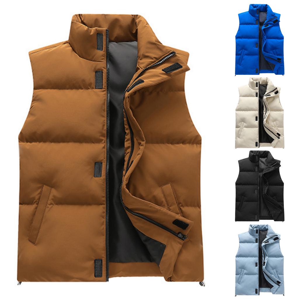 Мужской и женский повседневный однотонный безрукавный жилет на молнии, мужской жилет с хлопковой подкладкой, теплый, с воротником-стойкой и капюшоном
