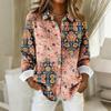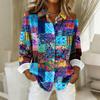Женская рубашка-блузка с принтом и пуговицами, длинный рукав, повседневный базовый рубашечный воротник, обычный топ