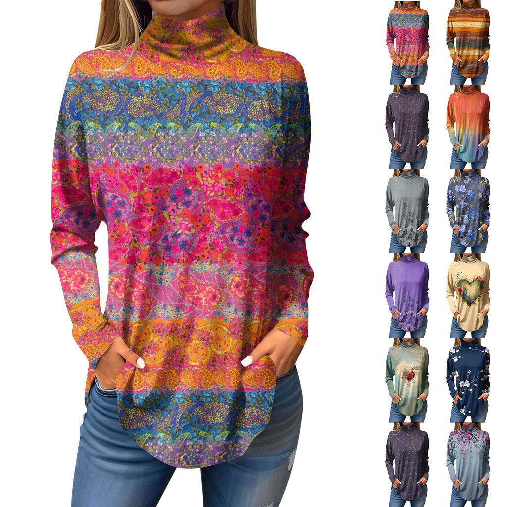 Женские футболки Осенние повседневные рубашки с длинным рукавом Толстовка Винтажный принт Высокая горловина Топ Пуловер Описание: 1. [Ткань]: Высококачественный имитационный хлопок, круглый вырез, длинные рукава, ткань одежды в целом дышащая, очень удобная, очень гладкая для кожи, очень удобная для ношения весь день 2. [Дизайн]: Женская рубашка-топ, повседневный топ, свободного кроя, из удобного материала, модная женская рубашка, подходящая для работы, отпуска, пляжа, школы, прогулок, вечеринок, дома и повседневной носки 3. [Сопоставление]: Сочетайте с облегающими брюками, куртками, джинсами, капри, брюками или юбками весной или летом, чтобы сделать вас более элегантной и женственной 4. [Размер]: Ткань этого изделия эластичная. Перед покупкой внимательно проверьте свой размер и сделайте выбор. 5.[Чистка и уход]: Рекомендуется чистить водой с температурой ниже 30 градусов по Цельсию или холодной водой, чтобы избежать выцветания. Цвета разных мониторов могут иметь небольшие цветовые различия, пожалуйста, не обращайте внимания Информация о продукте: Пол: Женский праздник: досуг Материал: Тип полиэфиру: печать : повседневная длина: обычный длинный рукав Толщина: стандартный метод очистки: мойте руки в холодной воде, повесьте или высушите Вы получите: 1 женский топ